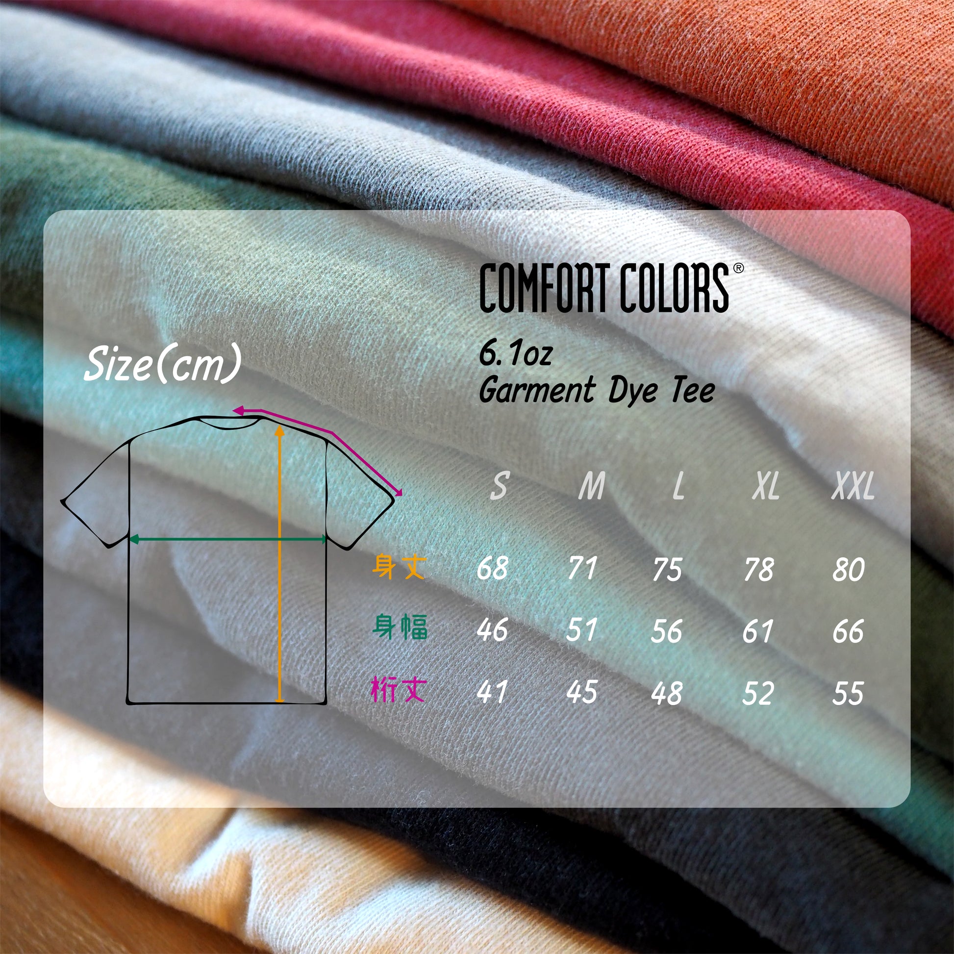 永く着用してもらえるように、シルエットも綺麗で着心地や色あせ方に定評のあるConfort Colorsを選んでいます。
